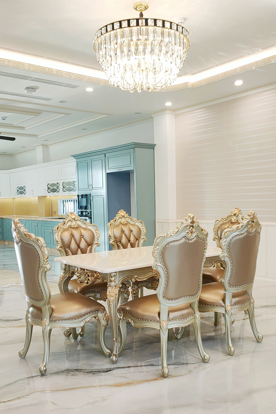 Living spaces need not only to be beautiful but also to make a statement. The line of classic furniture with gold leaf embodies the art of luxurious living, where every carved detail reflects meticulous craftsmanship, and each layer of gold leaf mirrors the brilliance of power and refined taste.