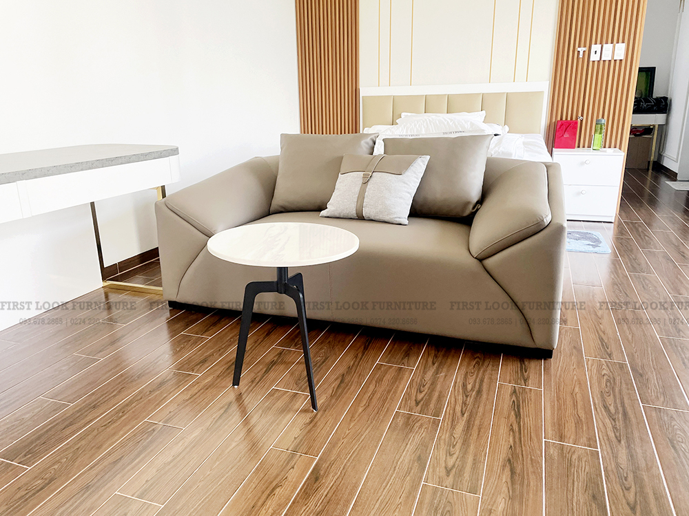 Chất liệu đồng bộ với bàn trà, tạo sự hài hòa
