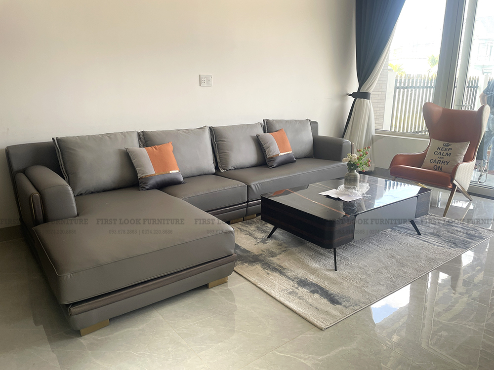 Sofa góc L: Thiết kế thông minh, tận dụng tối đa không gian, mang lại sự thoải mái và ấm cúng.